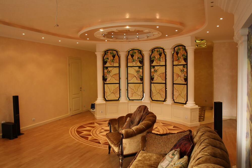 Гостиная является смысловым центром дома, поэтому ее колористика должна быть универсальной. Выбирая подходящий цвет комнаты для зала, необходимо учитывать объем помещения и высоту потолков. Для небольших пространств оптимальны светлые пастельные тона с высоким коэффициентом светоотражения (LRV), которые визуально раздвигают границы стен. В просторных залах можно экспериментировать с темными, камерными цветами, создающими атмосферу уюта и защищенности. Важно, чтобы палитра гостиной логически продолжала концепцию прихожей и кухни, создавая единый визуальный маршрут по всей площади объекта. Это нужно учесть на этапе разработки дизайна интерьера.